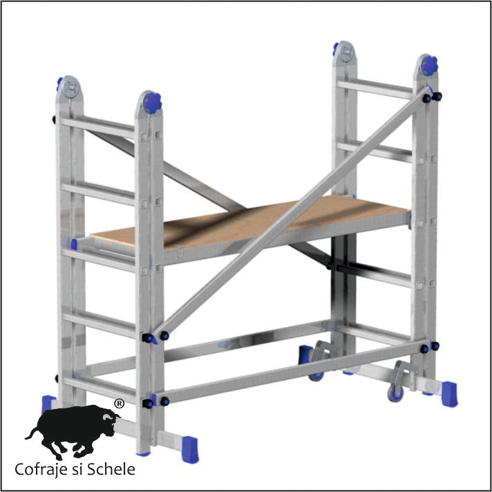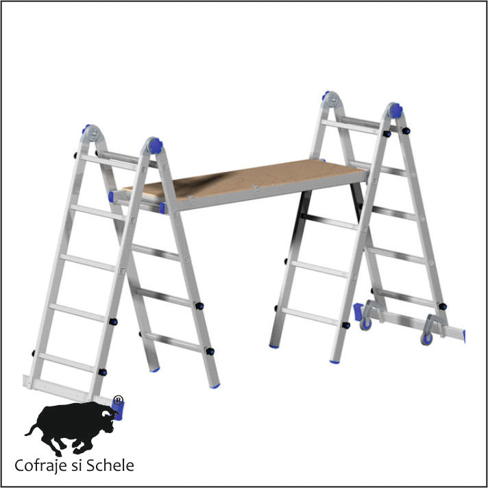 Schela din aluminiu TEAM reprezinta singur produs pentru mai multe soluții de lucru. Rapid de asamblat fără a folosi chei sau unelte și ușor de depozitat datorită dimensiunilor reduse, ideal pentru lucrări de întreținere sau vopsire. TEAM este echipament pentru lucru la altitudine joasa, care poate fi folosit ca scara simpla, scara dubla sau suprafata de sprijin.